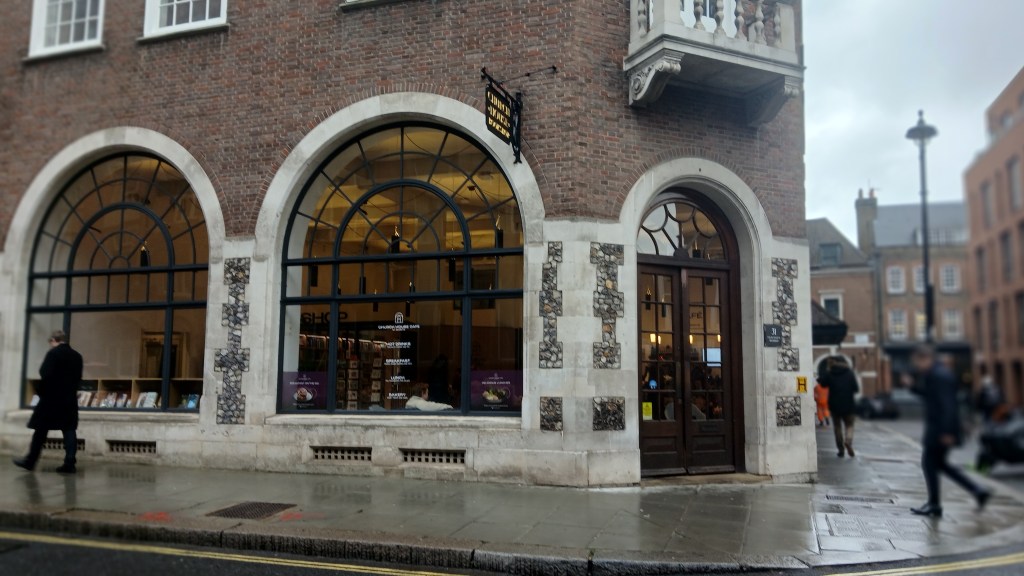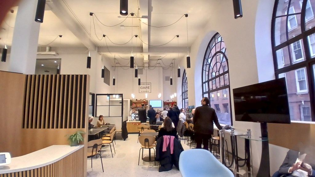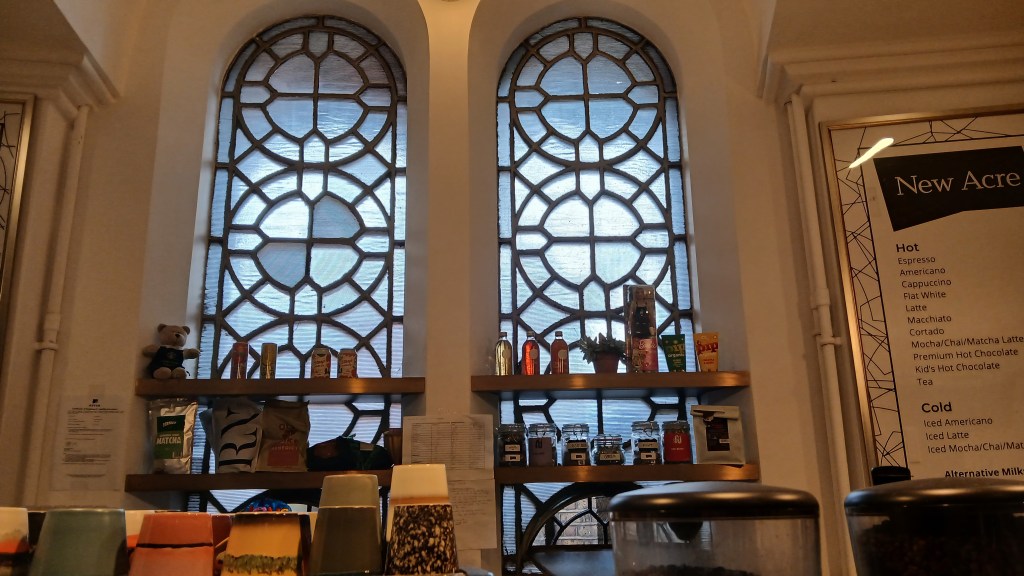I visited this café last year when it was closed for a private function. This time there was a conference in the hall but the café was open so I had a latte and chatted to barista Darina, who told me about Church House Café (below.) I’ll repeat here what I wrote about New Acre’s interesting history last year: The area around Westminster Chapel was named ‘The Devil’s Acre’ by Charles Dickens in the 1800s, being a place of crime and extreme poverty. The Chapel established schools, alms-houses for the poor and work schemes for the unemployed, and Dickens was impressed by the way the Christians devoted their lives to the care of the inhabitants of the Devil’s Acre. The café was named New Acre ‘to remind us of the reason that God has put us here today.’ The profits from sales of the coffee sold here, Old Spike Benedict Blend, go directly to support people experiencing homelessness.