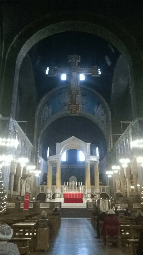 Also South of the River is the Roman Catholic St Georges Cathedral, situated close to the Imperial War Museum, well worth a visit even if you’re not a fan of war. The cathedral is a relative newbie, built in 1848. It was severely damaged by incendiary bombs in World War II and there’s a wonderful picture of a priest walking through the bombed-out shell of the building on Wikipedia (I can’t show it because I’d need permission, but you can look it up yourselves.) The cathedral was redesigned and rebuilt by the brilliantly named Romilly Craze in a 20th Century Gothic Revival style (of course, what else?) There is a Spanish Mass to serve the large Latin American community and the cathedral is involved with several projects in South America and Africa. The Southbank University holds its graduation ceremonies here. I love the modern smooth stone look of the interior, there’s probably a technical word for this.