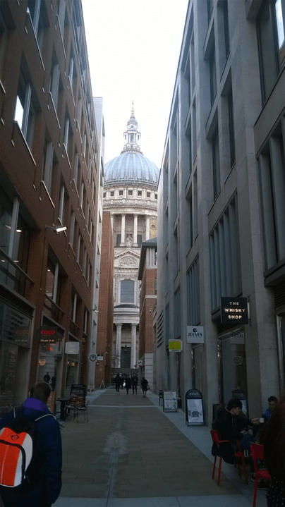 The iconic, instantly recognisable St Paul’s Cathedral is situated at the highest point of the City of London, Ludgate Hill. The present building dates from the late 17th Century and was designed and built by Sir Christopher Wren in the English Baroque style. The earlier 1087 Gothic cathedral was destroyed in the Great Fire, and interestingly, before the Fire, Wren was commissioned to simply repair Old St Paul’s which had been damaged in the English Civil Wars. But he ended up building a whole new one, to a completely new design! The cathedral escaped major damage in World War II while other buildings around it were reduced to rubble. and there is another atmospheric photo of the dome shrouded in smoke but still standing, which you can find on Google Images. A church dedicated to St Paul was built on or near the site in AD604 as the seat of the new Bishops of London. Bishop’s seat, cathedra, remember? A personal connection – when I was eight, my Dad took me and my sister to visit St Paul’s and I climbed a vertical ladder right into the gold cross at the very top. That hasn’t been allowed for years!
