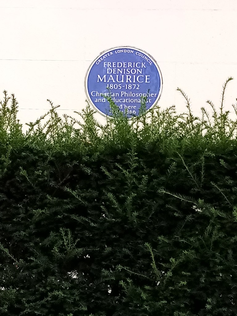 Frederick Denison Maurice (1805 – 1872) His plaque says ‘Christian Philosopher and Educationalist’ and he was prominent in Christian Socialism. He was an Anglican priest, ordained in 1835, and in 1838 he wrote ‘The Kingdom of Christ’, a book about how God’s Kingdom should be here on Earth now, not a Heaven that we go to when we die. A Rob Bell (‘Love Wins’) of his day! Living in London, he said ‘the condition of the poor pressed upon me with consuming force’. Working class men trusted him when they distrusted other clergymen and the church, because of his social action approach. He believed that ‘Christianity rather than secular doctrines were the only sound foundation for social reconstruction.’ From 1848 to 1854, FD was Leader of the Christian Socialists, and he was characterised as their spiritual leader because he was interested in theological aspects rather than just social action. In other words, he wanted to put the Words of Jesus into action. I would have loved to have met him and discussed his work!