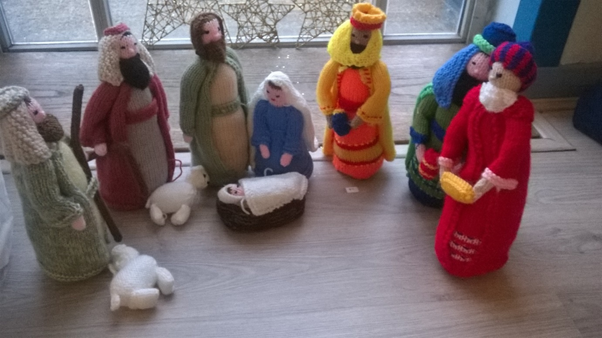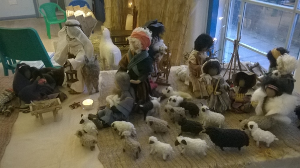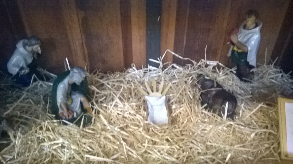 These last two pics are of a Nativity completely hand made by one of the Minister’s Grandparents in Switzerland. Apparently, handmade Nativities are a big thing there! It’s beautifully detailed; there are flocks of sheep, shepherds huddled round a fire and some holding lambs, a king on a camel and some kneeling kings. It would look amazing in any church!