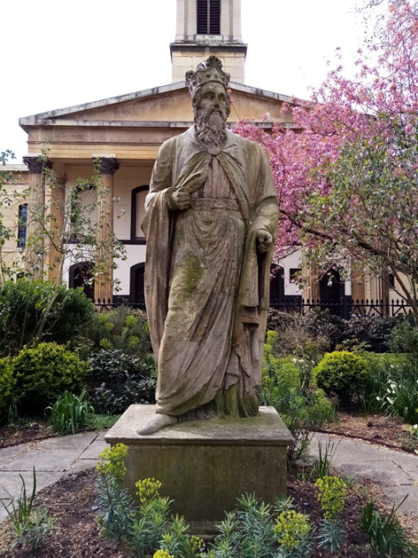 I was surprised to find that this is a private garden, one of those ones where local residents have a key to get in and the riff raff are kept out. I can appreciate why people without their own garden should have their own private recreational space, but it was frustrating that I had to take my photos through the locked gate! The building here was originally Holy Trinity Church built in 1823, with the gardens being laid out between 1824 and 1832 and the church converted to the Henry Wood Hall for music recitals in 1975.  In the middle of the garden is a statue of King Alfred the Great on a stone pedestal which may once have stood in Westminster Hall.