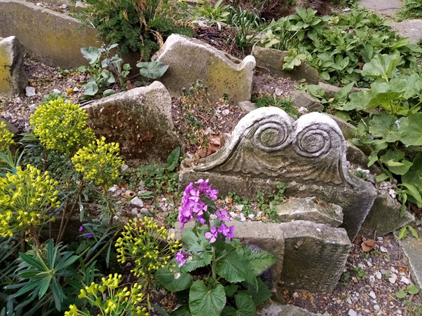 Unusual rockery made of headstones