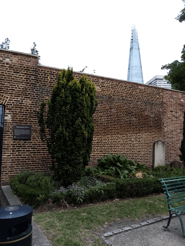 The churchyard surrounding St George the Martyr was once a much larger, single space but was split in two in 1902 by a road connecting to Borough High Street, Tabard Street (now pedestrianised). Hence there are now two separate gardens, the small one with the church in it and the larger, prettier, St George’s Gardens. There’s been a church on this site since the 12th Century and the present church dates from the 18th. Another Dickens connection: the Church is known as ‘Little Dorritt’s Church’ because the Dickens’ character was married here. A closer connection for Charles is that Marshalsea Prison, where his father was incarcerated, was situated behind the Northern boundary wall of St George’s Gardens. An unusual feature of the garden is the way some of the ancient gravestones have been made into an attractive rockery!