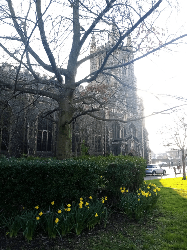 Noticing how lovely my local churches are looking in the Spring sunshine, with the daffodils around them, I thought I’d visit some closer to home than usual. These are all in London boroughs, so they all count as London!