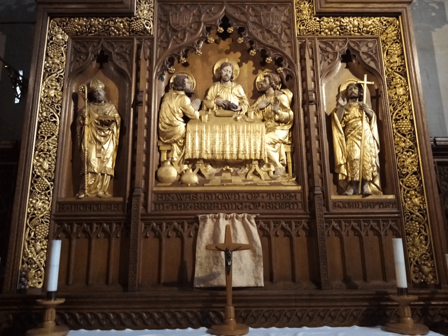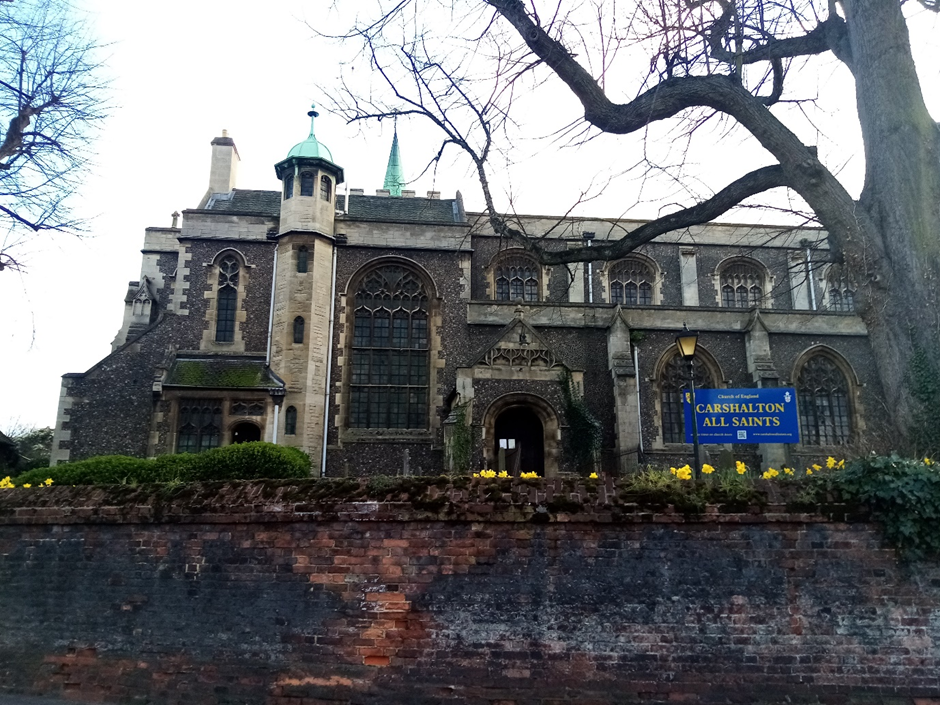 A church has stood on this site since Saxon times and was mentioned in the Domesday Book (1086.) At that time there was a spring rising nearby, one source of the River Wandle, which we now know as Carshalton Ponds. Parts of the original construction, notably the tower, remain but it has been added to over the next 800 years to the building we see today. The interior is spectacular, these works were installed between 1920 and 1941. The Revd. WR Corbould became Rector in 1919 and through his friendship with Sir Ninian Comper, a renowned church architect, began work on a series of ‘remarkable embellishments’; they certainly make it different from most parish churches. A red Sutton Heritage plaque on the outside wall lists people associated with the church, who all have the distinction of having Sutton/Carshalton streets named after them: Nicholas Gaynesford, Sherriff of Surrey and Sussex; Sir William Scawen, Governor of the Bank of England; Sir John Fellowes, sub-governor of the South Sea Company.