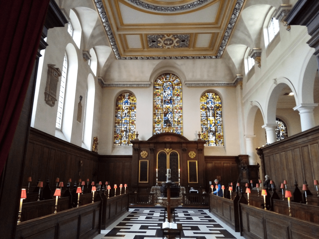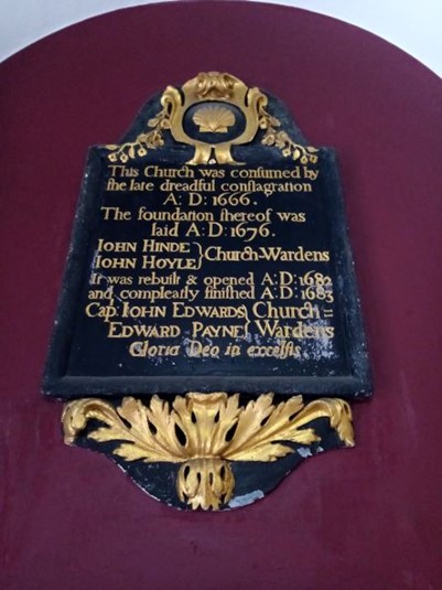 Possibly the most curiously named church in the City and founded in the 12th century, during the 13th century the church became part of Baynard’s Castle, a former medieval palace which stood on the banks of the Thames near Blackfriars (see picture below). In 1361, the resident King Edward lll moved his storehouse of arms, ceremonial robes and personal items, the ‘Royal Wardrobe’, from the Tower of London to a building close to the church and the castle. The Wardrobe was not just a building, it was also a State Department responsible for keeping the accounts of the Royal Household. Both the Wardrobe and the Church were destroyed in the Great Fire, and the replacement church, one of 51 new churches built by Sir Christopher Wren, is one of the simplest of his designs. St Andrew by the Wardrobe was gutted during the London Blitz bombings, leaving only the tower and walls standing. The church was rebuilt and rededicated in 1961 and some of the interior fittings were procured from other destroyed Wren churches. William Shakespeare was a member of the parish for 15 years while he was working at the nearby Blackfriars Theatre.
