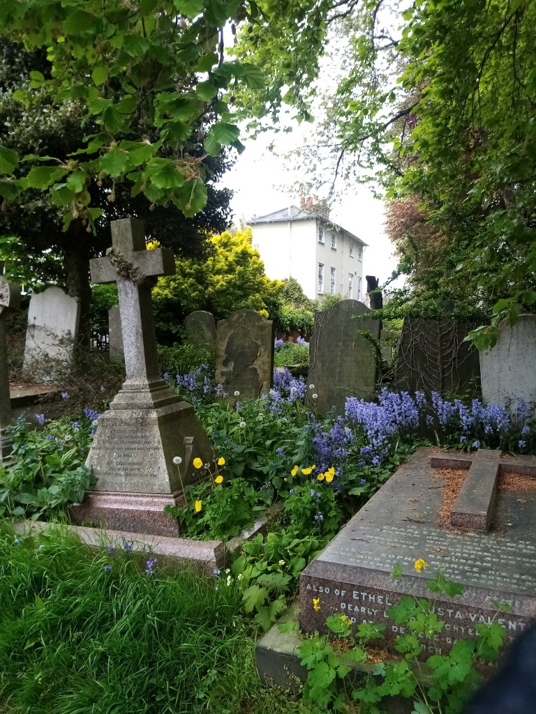 I was not able to go inside this church, which is a shame because it has been extensively restored and repaired, inside and out, as part of a Grand Restoration programme since 2015. But I love its tall, elegant tower and its location at one of the highest points in London. The church has long historical connections with the old village of Hampstead and the Heath, much of which is within the parish. The church was built in 1852 by architect Samuel Dawkes in the early English Gothic style. It’s situated in a very pretty square, Hampstead Place, and established its own school in 1855, originally just for infants, but now a primary and nursery school. Just two streets away from the church is a road leading to the confusingly named Vale of Health, not Vale of Heath, as I thought it was! This is a group of large villas entirely surrounded by the heath. The name the Vale of Health may have been coined as a deliberate attempt to change the image of the area: once a wet, marshy area, it was drained in 1777 by the Hampstead Water Co. and by the 1830s had become a desirable place to live for the romantic poets and other media figures of the day. Byron, Shelley and Taylor Coleridge all resided there at one time, and of course, Keats lived just down the road.