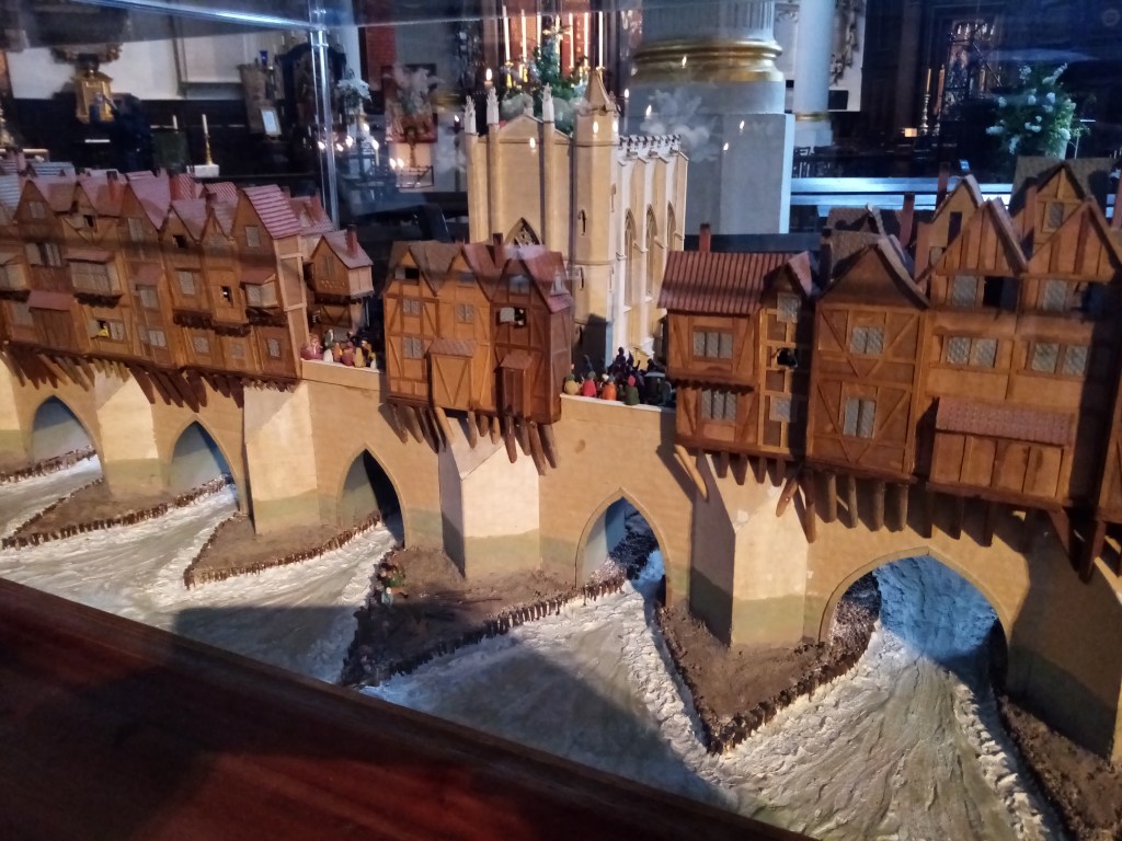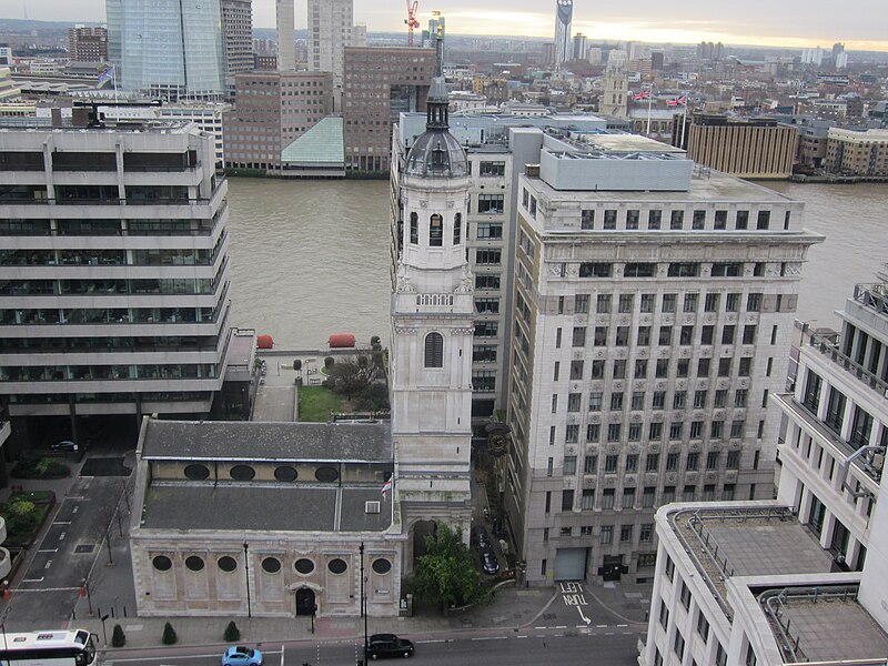 The first church on this site was built in the 11th century and the churchyard was formerly the gateway to the bridge that spanned the Thames there from 1176 to 1831, Old London Bridge. This was the bridge which was lined with houses and shops, and there is a beautiful scale model of the bridge inside the church. St Magnus was one of the first to burn down in the Great Fire of 1666, due to its proximity to Pudding Lane where the fire started, and following the fire, the first rudimentary fire brigade was established. Christopher Wren designed and built the present church in 1670, his design included arches which people had to pass through to set foot on the bridge; consequently it got very congested, as this was London’s only bridge. When a new bridge was commissioned in the 1830s it was built further upriver, where the Romans had built a series of bridges. In the churchyard outside there is a piece of wood from the Roman London Bridge and some stones from the Mediaeval bridge.