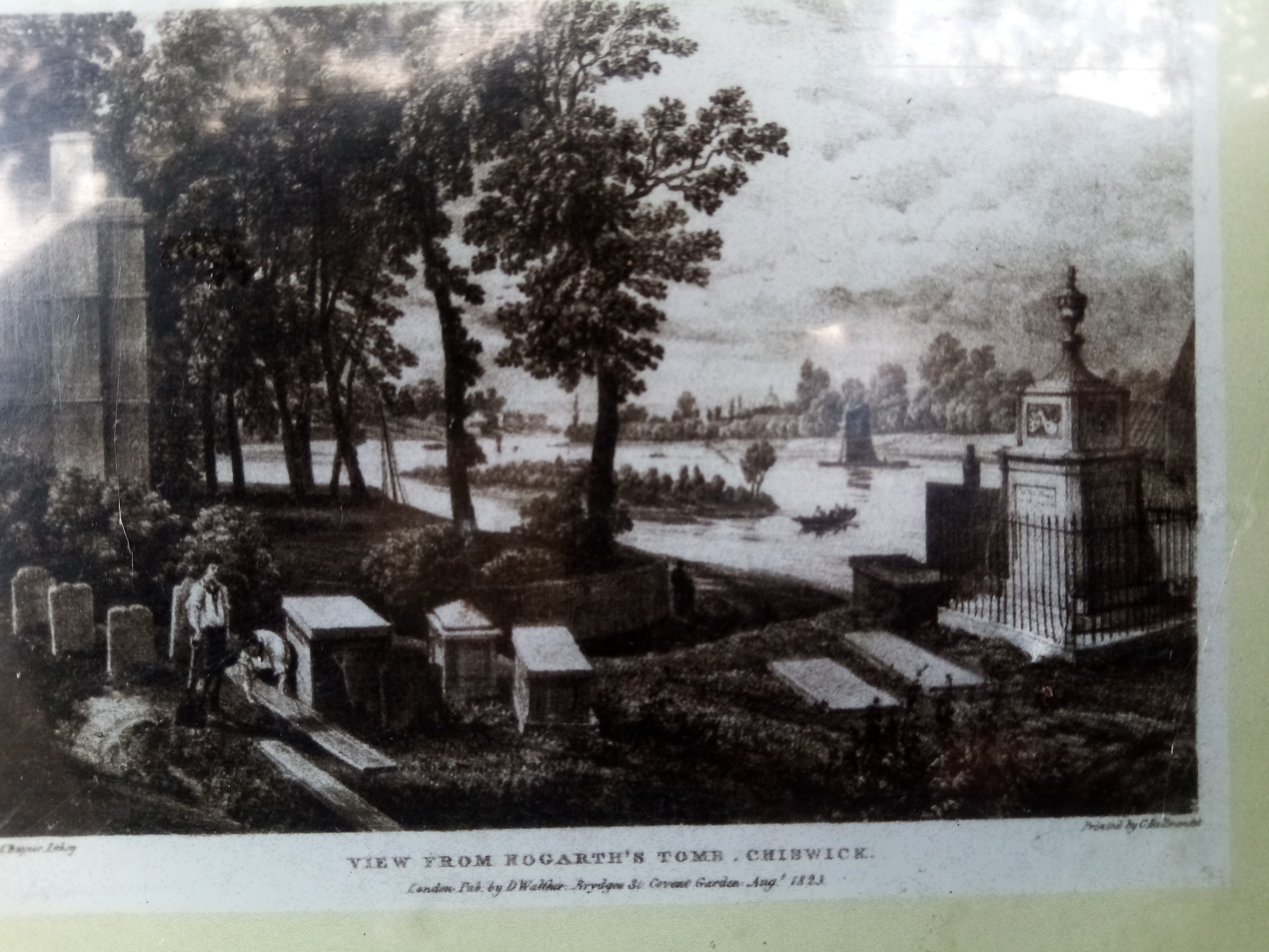 Upstream from Putney Bridge is St Nicholas, the Parish Church of Chiswick, situated unsurprisingly in Church Street, which once led down to the banks of the Thames to the ferry, the only means of crossing the River at this point for hundreds of years. The church is dedicated to St Nicholas, the patron saint of sailors and fishermen, a common practice where the livelihood of the parishioners depended on rivers or seas. The village of Old Chiswick grew up around the first Norman church from about 1180, but there is some evidence of a pagan shrine on this site in the seventh century which was converted to Christian worship. Like the previous two churches, the tower, built between 1416 and 1435 is the only remaining part of the current church, which dates from 1882. The rebuilding of the church was financed by the brewer Henry Smith of the nearby brewery Fuller, Smith and Turner, now known as Fullers, Chiswick. The artist William Hogarth is buried in the churchyard; an engraving on the accompanying plaque shows how close to River the church used to be.