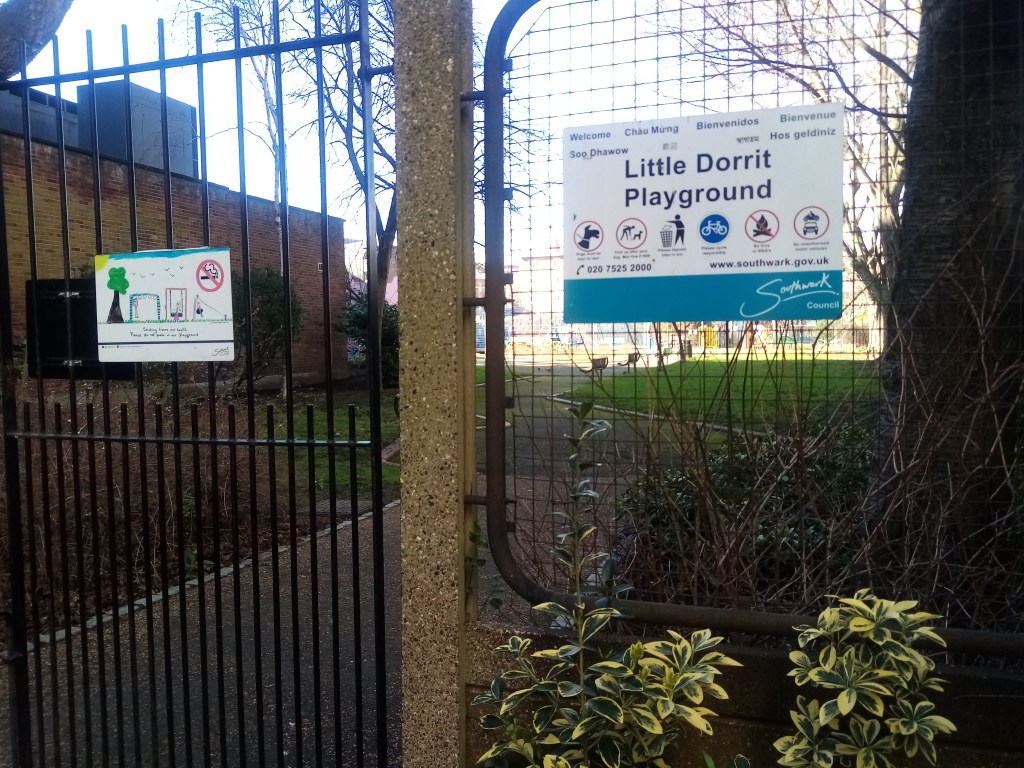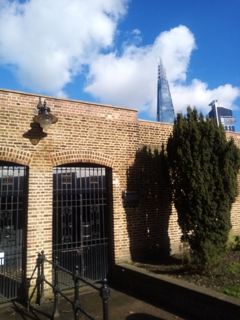 The borough of Southwark, south of the Thames, was also an area Charles Dickens knew well. He lodged with a family in Lant Street close to the Marshalsea Prison where his father was incarcerated for non payment of debts in 1824. The 12 year old Charles had to go out to work to help support the family, and this had a profound effect on him, and he often featured prison and debt in his works. Part of the remaining wall of The Marshalsea is a boundary of St George the Martyr churchyard, which in the 1800s would have been a burial ground. Both the church and the prison featured in Little Dorrit; Amy Dorrit was christened in the church and later married Arthur Clensham there. Amy’s father, William Dorrit was imprisoned in The Marshalsea. Little Dorrit Children’s Playground is across the road from the church, named in memory of the novel.