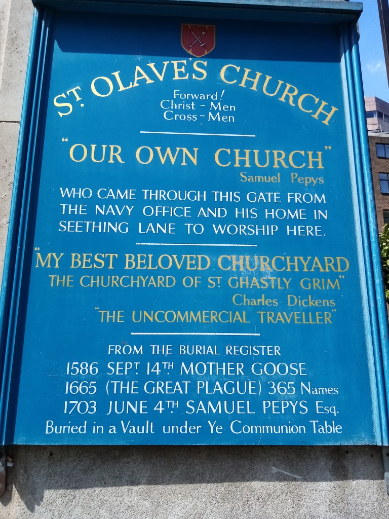 Dickens described the spikes on top of the gate as going down into the skulls! St Olave’s was a favourite church of Samuel Pepys too.