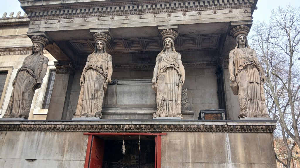 The church’s website describes it as ‘liberal Anglican Christianity in Central London.’ Located in Euston Road, it serves the communities of Euston, St Pancras and Somers Town. The church building was consecrated in 1822 and was known as ‘new’ St Pancras as it replaced the neglected and dilapidated ‘old’ St Pancras, which has since been restored as a parish church. The most celebrated features of the church are the two sets of caryatids: Greek statues copied from those on the Acropolis in Athens, designed by local architect William Inwood and his son, Henry Inwood. The statues are made of terracotta and were constructed in sections around cast-iron columns. They are certainly impressive at first sight. The total cost of the building was £76,679, making it the most expensive church to be built since the reconstruction of St Paul’s Cathedral following the Great Fire. The Crypt Gallery beneath the church is a spacious exhibition area hosting art displays, private events and film and photo shoots. The church holds lunchtime music recitals twice a week and a monthly Theological Reading Group. There is a Street Food stall in the church garden open Mondays to Fridays from 11.30 to 2.30 serving a variety of international food.