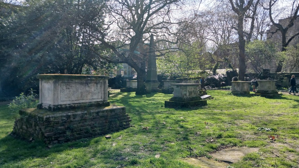 A diverse selection this month: a unique parish church, an innovative church building, a small park (formerly a cemetery) and a gem of a chapel. This is an area north-west of central London bordered by Euston Road to the north and Great Ormond Street, home of the famous children’s hospital to the south. Notable places of interest are the Charles Dickens Museum and the Foundling Museum, founded by 18th century philanthropist Thomas Coram. Several other interesting places to visit in the area, but as always, I’m focusing on the Christian aspects and locations!