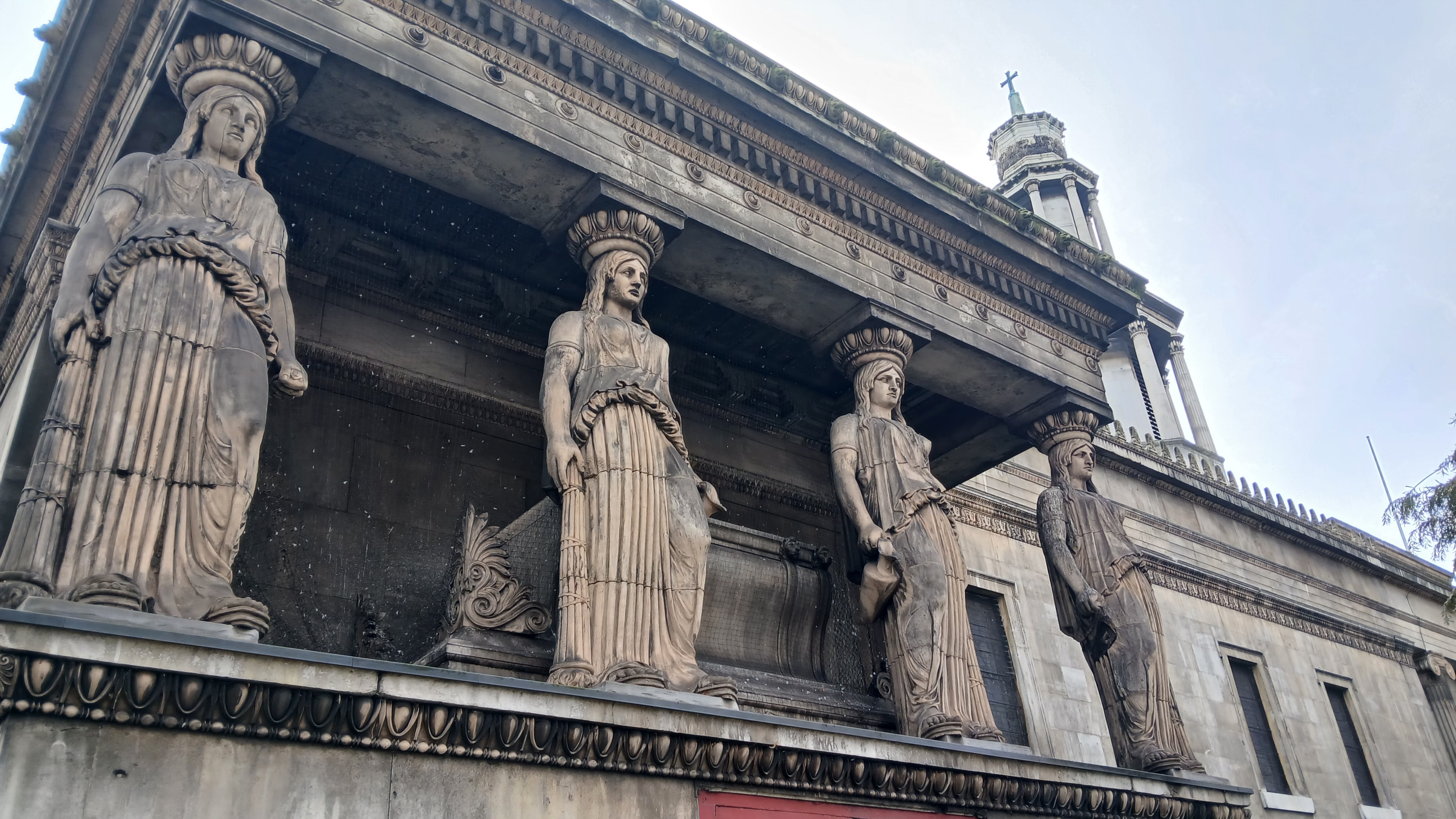 The church’s website describes it as ‘liberal Anglican Christianity in Central London.’ Located in Euston Road, it serves the communities of Euston, St Pancras and Somers Town. The church building was consecrated in 1822 and was known as ‘new’ St Pancras as it replaced the neglected and dilapidated ‘old’ St Pancras, which has since been restored as a parish church. The most celebrated features of the church are the two sets of caryatids: Greek statues copied from those on the Acropolis in Athens, designed by local architect William Inwood and his son, Henry Inwood. The statues are made of terracotta and were constructed in sections around cast-iron columns. They are certainly impressive at first sight. The total cost of the building was £76,679, making it the most expensive church to be built since the reconstruction of St Paul’s Cathedral following the Great Fire. The Crypt Gallery beneath the church is a spacious exhibition area hosting art displays, private events and film and photo shoots. The church holds lunchtime music recitals twice a week and a monthly Theological Reading Group. There is a Street Food stall in the church garden open Mondays to Fridays from 11.30 to 2.30 serving a variety of international food.