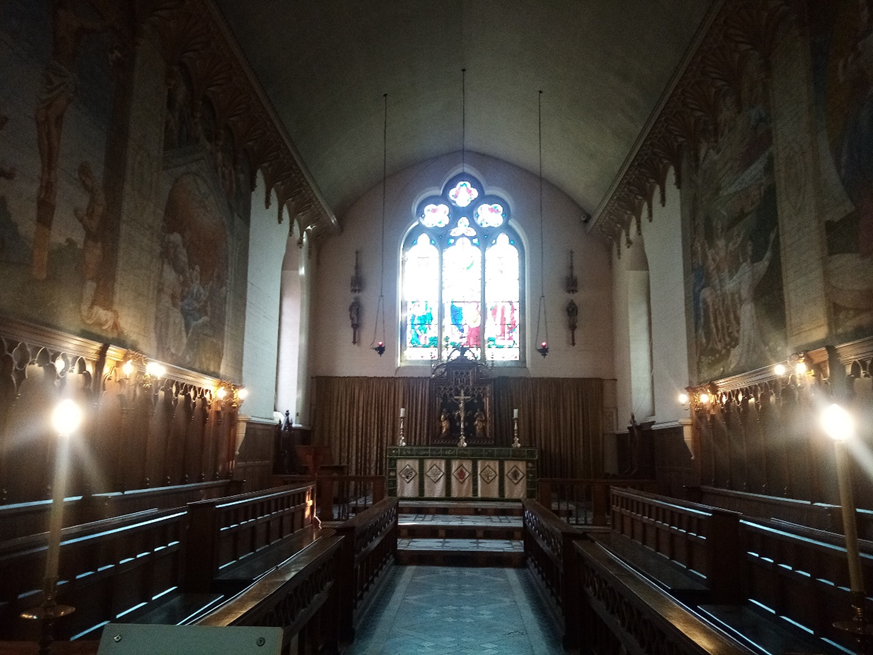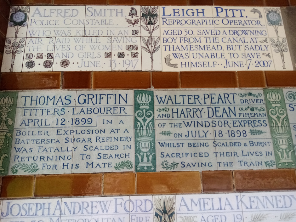 Still surrounded by its ancient churchyard, the present church was built in 1864 at a cost of £7,600, to accommodate the increase in population; the original mediaeval church was mentioned in the Domesday Book. The Revd Herbert Turner became the incumbent in 1866, two years after the building of the new church, and he was well known locally for his charitable work. He set up a committee of local tradesmen to provide dinners for 2,500 poor children during the winter months, and a ‘Clothing, Blanket and Boots’ club for the poor. The church continues its work in the community by being the HQ of the Sutton Street Pastors who go out from here on Fridays and Saturdays to engage with the people of Sutton. They have developed a good relationship with rough sleepers, some of whom ‘live’ in the churchyard. On the North side of the church the windows are plain glass instead of stained-glass as a reminder of the bomb which landed and exploded in the churchyard on the night of 24th September 1940. All the windows on this side were blown out, but this was the only significant damage to the church. In the churchyard stands the Gibson Mausoleum which was built in 1777, containing the remains of James Gibson, a London wine merchant and his family, paid for by his eldest daughter Mary. Both her parents died in 1776 and Mary used some of her inheritance to pay for them to be interred here instead of in the churchyard. Inside are 2 hexagonal sarcophagi and 5 hexagonal wooden coffins, all extended family of James Gibson. The tomb opens for annual inspection on August 12th and last year a distant relative from America attended the ceremony. One of the church’s treasures is the original small mediaeval font, rescued from the original church.