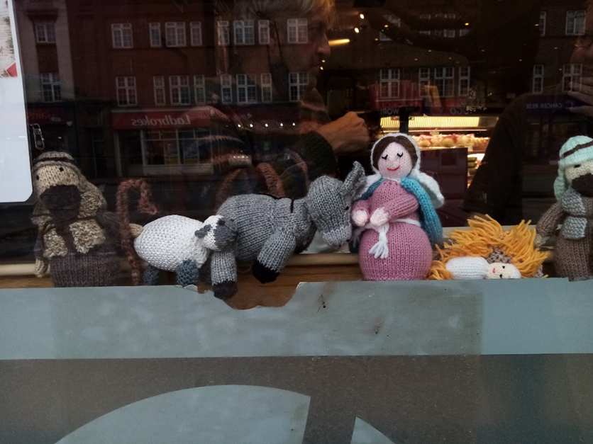 St Mary’s RC School‘Knitivity’ in The Grove Park, Carshalton…..….and in Costa Coffee, Carshalton High StreetNativity at friends’ house, Carshalton Beeches
