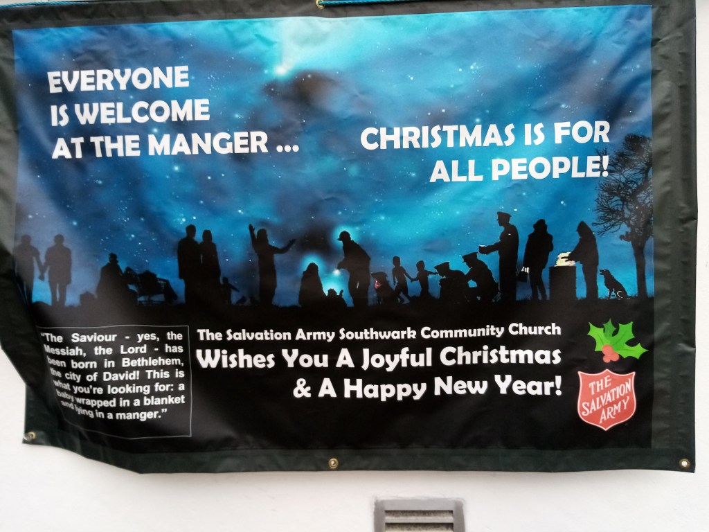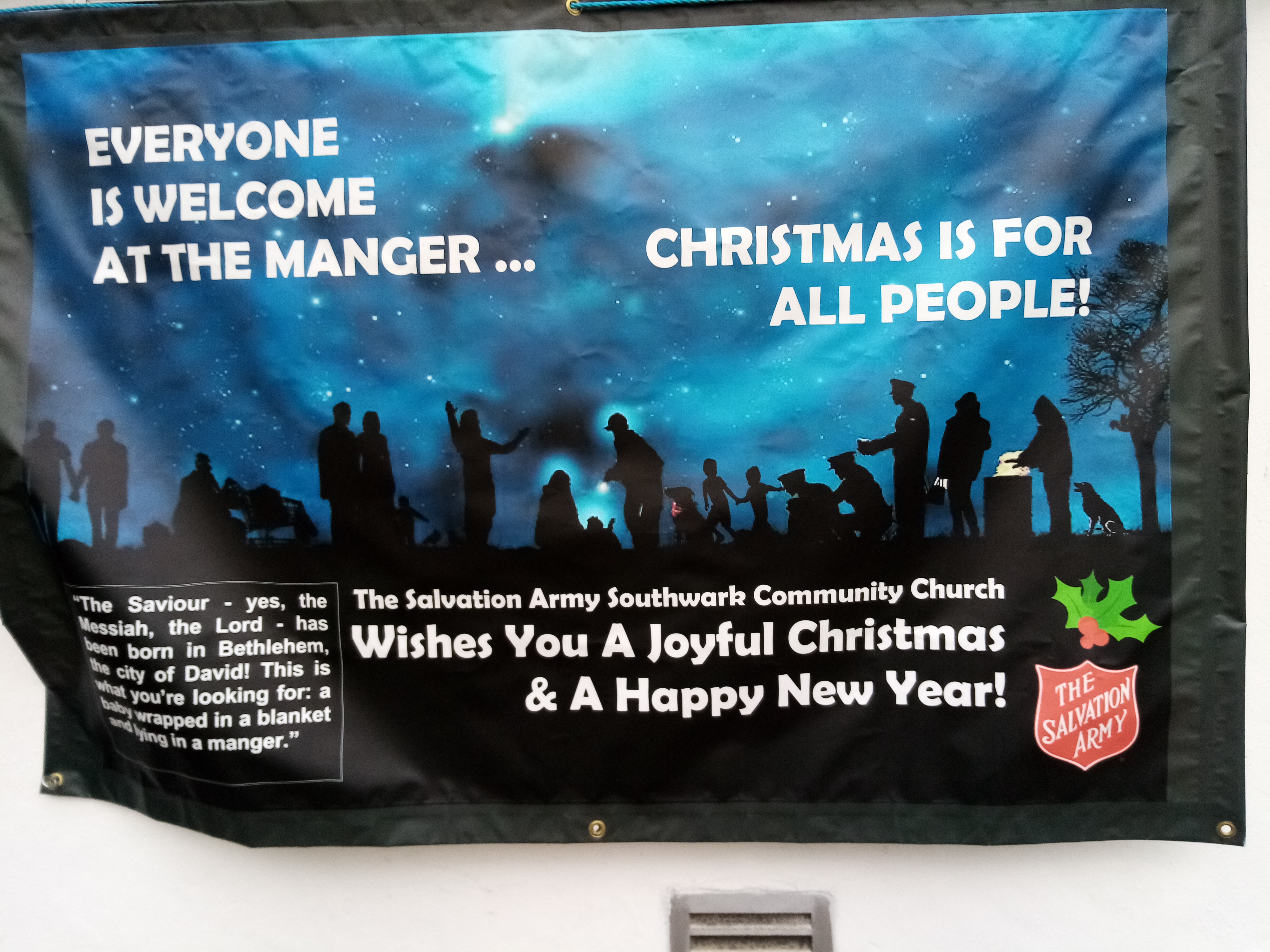 These posters are on the wall of the Salvation Army Church at Southwark. I love the first picture of all the different people coming to the manger – ‘Christmas is for all people’.