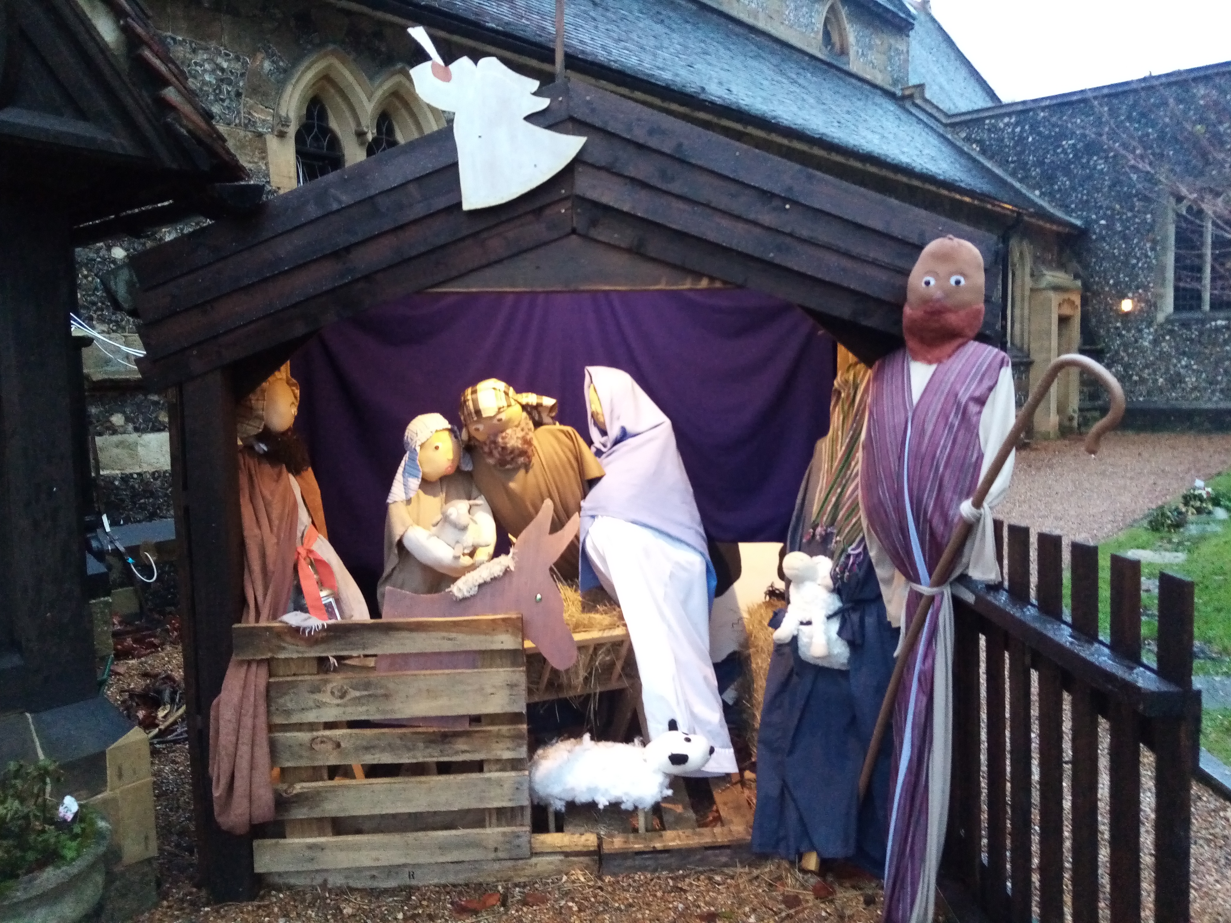 Oasis Christian Bookshop, WallingtonAnd lastly, the Nativity at the beautiful, 900-year-old Chaldon Church (with a CR3 postcode, it counts as Croydon!) I like that the shepherds, Mary, Joseph, Jesus and some angels are assembled in the stable, while the Wise Men wait on a shelf until it’s their turn to arrive.